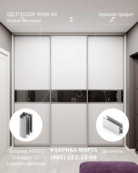 Мебельная фабрика «МИРТА» изготавливает мебель и шкафы-купе из ЛДСП ЭГГЕР на заказ более 18 лет. За эти годы накоплен большой опыт в проектировании и производстве мебели по индивидуальным размерам. Мы готовы сделать многофункциональный вместительный шкаф по Вашим размерам из самых современных материлов.